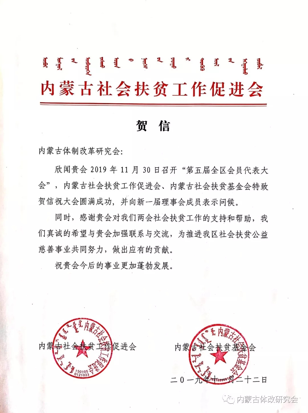 內(nèi)蒙古社會(huì)扶貧工作促進(jìn)會(huì)、內(nèi)蒙古社會(huì)扶貧基金會(huì)發(fā)來(lái)賀信