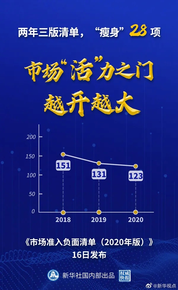 國(guó)家發(fā)展改革委、商務(wù)部16日公布《市場(chǎng)準(zhǔn)入負(fù)面清單(2020年版)》。新版清單直接放開(kāi)“森林資源資產(chǎn)評(píng)估項(xiàng)目核準(zhǔn)”等措施,刪除“證券公司董事、監(jiān)事、高級(jí)管理人員任職資格核準(zhǔn)”等措施,清單事項(xiàng)縮減至123項(xiàng),比2019年版清單再減8項(xiàng)。(記者安蓓 海報(bào)設(shè)計(jì):張惠慧 張晨光)