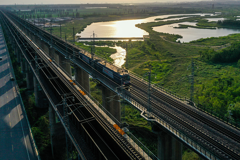 重載列車行駛在大秦鐵路上(2022年7月16日攝,無人機(jī)照片)。為做好迎峰度夏能源保供工作,中國鐵路太原局集團(tuán)有限公司在確保運(yùn)輸安全的前提下全力提升煤炭運(yùn)量。新華社記者 曹陽 攝