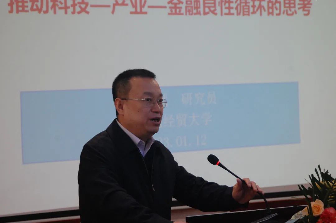 史玉強(qiáng)在書面致辭中說(shuō),此次會(huì)議雖然規(guī)模不大,時(shí)間也不長(zhǎng),但內(nèi)容很豐富,層層較高,很有特點(diǎn),是一個(gè)小而精、小而美的高質(zhì)量研討會(huì)。會(huì)議以貫徹黨的二十大精神,深化改革,推動(dòng)經(jīng)濟(jì)高質(zhì)量發(fā)展為主題,深入研究產(chǎn)業(yè)、科技、金融良性驅(qū)動(dòng),建設(shè)現(xiàn)代化產(chǎn)業(yè)體系,是當(dāng)前經(jīng)濟(jì)工作重點(diǎn)。會(huì)議組織形式新穎,兩個(gè)研究會(huì)、一所大學(xué)、一家銀行聚集研討,各有特點(diǎn),各有優(yōu)勢(shì),一定會(huì)推出高水平成果。參會(huì)演講的專家都是業(yè)內(nèi)、省內(nèi)的頂級(jí)專家,是一次名副其實(shí)的精英聚會(huì)。會(huì)議堅(jiān)持虛實(shí)結(jié)合,設(shè)計(jì)了銀企對(duì)接環(huán)節(jié)。