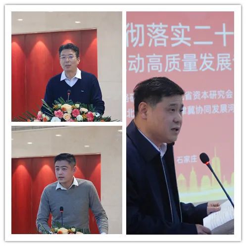 中國(guó)商業(yè)經(jīng)濟(jì)學(xué)會(huì)副會(huì)長(zhǎng)、河北省改革戰(zhàn)略研究會(huì)顧問(wèn)、河北經(jīng)貿(mào)大學(xué)原校長(zhǎng)紀(jì)良綱,河北省資本研究會(huì)會(huì)長(zhǎng)、杰明投資董事長(zhǎng)李月分別發(fā)表致辭,中國(guó)經(jīng)濟(jì)體制改革研究會(huì)副會(huì)長(zhǎng)、河北省改革戰(zhàn)略研究會(huì)會(huì)長(zhǎng)劉萬(wàn)玲致辭并作主旨演講,河北資本研究會(huì)首席經(jīng)濟(jì)學(xué)家、河北省商務(wù)廳原巡視員史玉強(qiáng)從外地發(fā)來(lái)書面致辭。河北省改革戰(zhàn)略研究會(huì)副會(huì)長(zhǎng)、河北經(jīng)貿(mào)大學(xué)副校長(zhǎng)田學(xué)斌教授,邯鄲銀行黨委書記、董事長(zhǎng)鄭志瑛教授,河北省宏觀經(jīng)濟(jì)研究院副院長(zhǎng)高智研究員,河北經(jīng)貿(mào)大學(xué)金融學(xué)院院長(zhǎng)王重潤(rùn)教授分別作主題演講。河北省改革戰(zhàn)略研究會(huì)副會(huì)長(zhǎng)、河北省社科院創(chuàng)新驅(qū)動(dòng)發(fā)展研究中心主任顏廷標(biāo)研究員主持研討會(huì)。會(huì)議期間還舉辦了新書發(fā)布、銀企對(duì)接活動(dòng)。參加會(huì)議的還有河北省改革戰(zhàn)略研究會(huì)特邀高級(jí)專家、河北冀廣傳媒集團(tuán)公司原董事長(zhǎng)趙華茂,河北省改革戰(zhàn)略研究會(huì)副會(huì)長(zhǎng)馮文斌 ,經(jīng)貿(mào)橋聯(lián)合創(chuàng)始人、省校企合作促進(jìn)會(huì)執(zhí)行會(huì)長(zhǎng)張曉軍,河北省資本研究會(huì)副會(huì)長(zhǎng)、河北省軍民兩用技術(shù)交易中心主任周天易,邯鄲銀行石家莊分行行長(zhǎng)常志英,河北省資本研究會(huì)秘書長(zhǎng)韓峰,河北省改革戰(zhàn)略研究會(huì)秘書長(zhǎng)李文正等。省內(nèi)經(jīng)濟(jì)界知名學(xué)者、行業(yè)專家和企業(yè)代表等30余人出席會(huì)議。