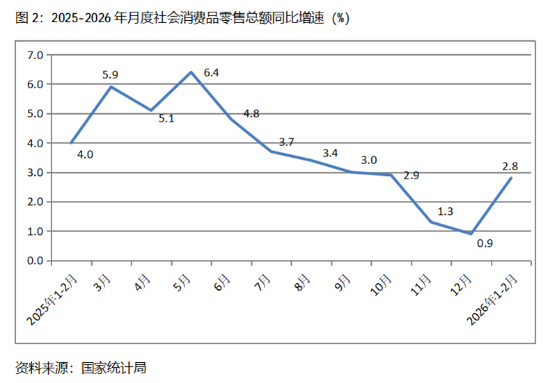 二、零售增速由落轉升。1-2月份,社會消費品零售總額同比增長2.8%,比上年12月份增長0.9%回升了1.9個百分點,上年12月份比上年11月份增長1.3%回落了0.4個百分點,其中,餐飲收入和商品零售額增速均出現了回升,1-2月份餐飲收入同比增長4.8%,比上年12月份增長2.2%回升了2.6個百分點;商品零售額增長2.5%,比上年12月份增長0.7%回升1.8個百分點。連續(xù)幾個月增速回落的社會消費品零售總額增速出現了積極回升的苗頭。