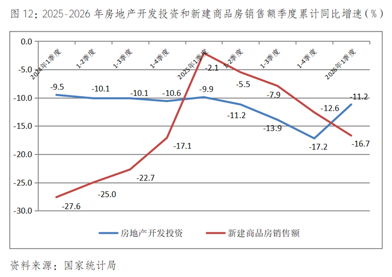 (三)房地產(chǎn)開發(fā)投資和新建商品房銷售額降幅比上年全年有縮有擴(kuò),比上年同期均擴(kuò)大。一季度房地產(chǎn)開發(fā)投資同比下降11.2%,比上年全年下降17.2%縮小6.0個(gè)百分點(diǎn),比上年同期下降9.9%擴(kuò)大1.3個(gè)百分點(diǎn);新建商品房銷售額下降16.7%,比上年全年下降12.6%擴(kuò)大4.1個(gè)百分點(diǎn),比上年同期下降2.1%擴(kuò)大14.6個(gè)百分點(diǎn)。