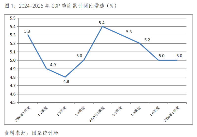 (一)GDP增速與上年全年持平,比上年同期回落。一季度GDP同比增長5.0%,與上年全年增長5.0%持平,比上年同期增長5.4%回落了0.4個(gè)百分點(diǎn)。與上年同期相比,第一產(chǎn)業(yè)增速回升,第一產(chǎn)業(yè)增長3.8%,比上年同期增長3.5%回升0.3個(gè)百分點(diǎn);第二產(chǎn)業(yè)和第三產(chǎn)業(yè)增速回落,第二產(chǎn)業(yè)增長4.9%,比上年同期增長5.9%回落1.0個(gè)百分點(diǎn);第三產(chǎn)業(yè)增長5.2%,比上年同期增長5.3%回落0.1個(gè)百分點(diǎn)。