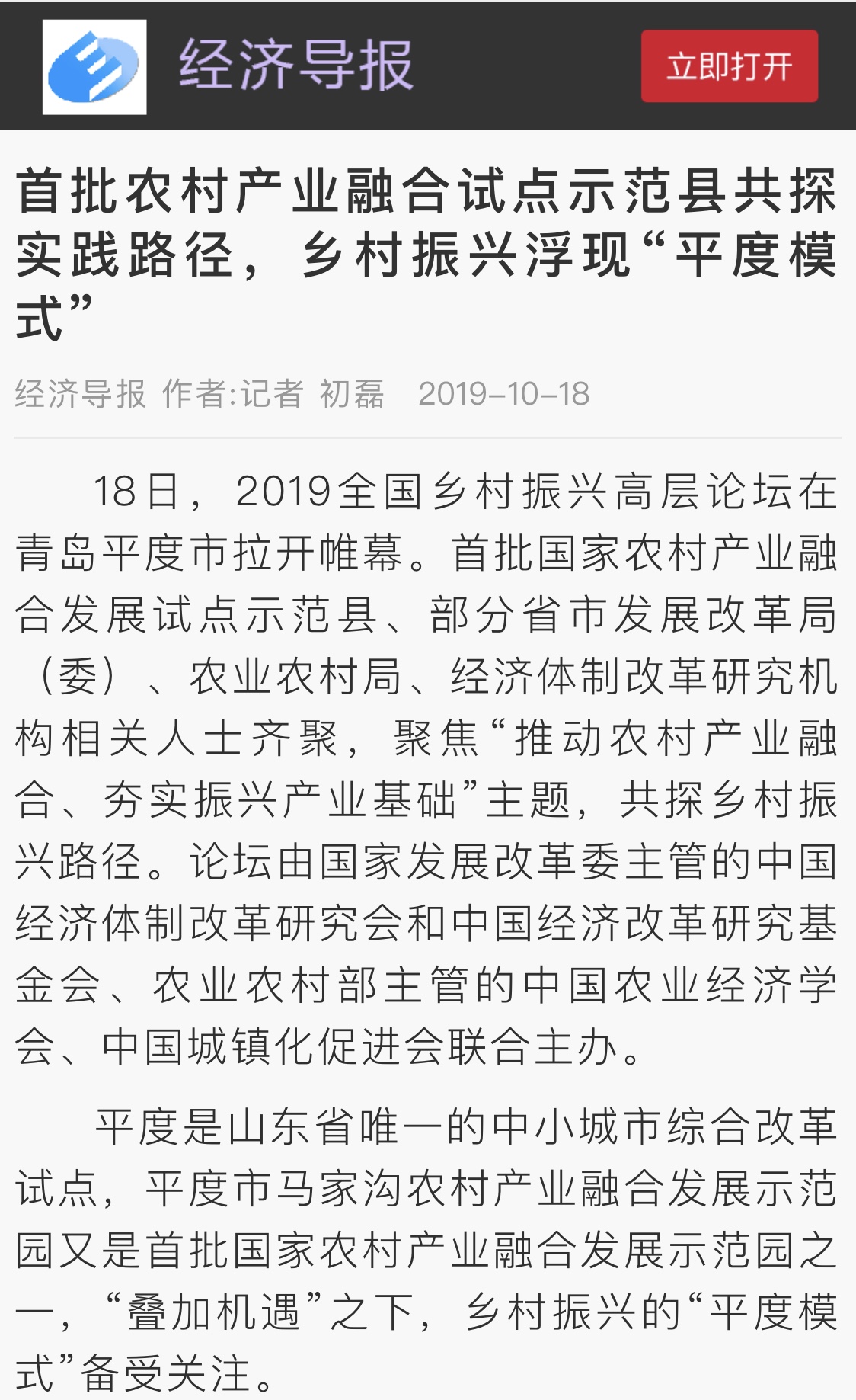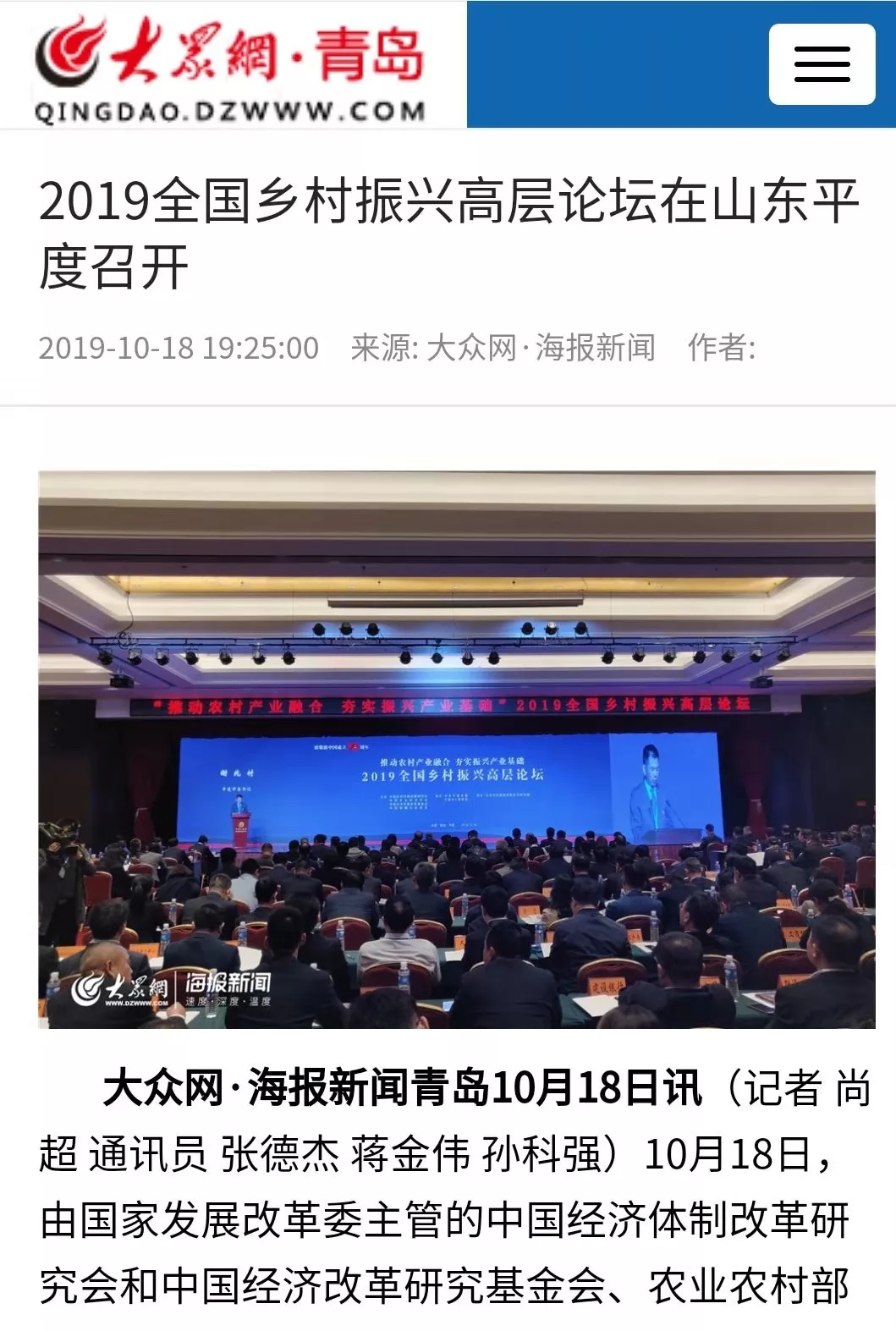 10月18日,中國(guó)經(jīng)濟(jì)體制改革研究會(huì)、中國(guó)農(nóng)業(yè)經(jīng)濟(jì)學(xué)會(huì)、中國(guó)經(jīng)濟(jì)改革研究基金會(huì)、中國(guó)城鎮(zhèn)化促進(jìn)會(huì)聯(lián)合主辦的2019全國(guó)鄉(xiāng)村振興高層論壇在平度市開幕,開啟了以“推動(dòng)農(nóng)村產(chǎn)業(yè)融合 夯實(shí)振興產(chǎn)業(yè)基礎(chǔ)”為主題的大討論。論壇上,中國(guó)經(jīng)濟(jì)體制改革研究會(huì)宣布把平度市列為博士后科研工作站調(diào)研基地,并授予平度“中國(guó)經(jīng)濟(jì)體制改革研究會(huì)博士后科研工作站調(diào)研基地”標(biāo)牌。